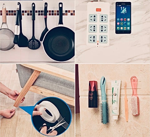 Le Nano Tape est la solution parfaite. Avec une capacité de maintien comparable à celle d'un cintre ou d'un clou, il vous permet de suspendre presque tout, sans percer le moindre trou dans votre maison. De plus, le Nano Tape se distingue par son absence totale de résidus collants lorsque vous le retirez des murs, offrant ainsi une esthétique impeccable, bien supérieure à celle des autres rubans adhésifs. Elle se colle à toutes les surfaces telles que le mur de votre maison, l'espace de travail de votre bureau ou même dans votre voiture sans laisser de résidus. Sans solvant, sans colle, ne tache pas, sans produits chimiques, et non-toxique.